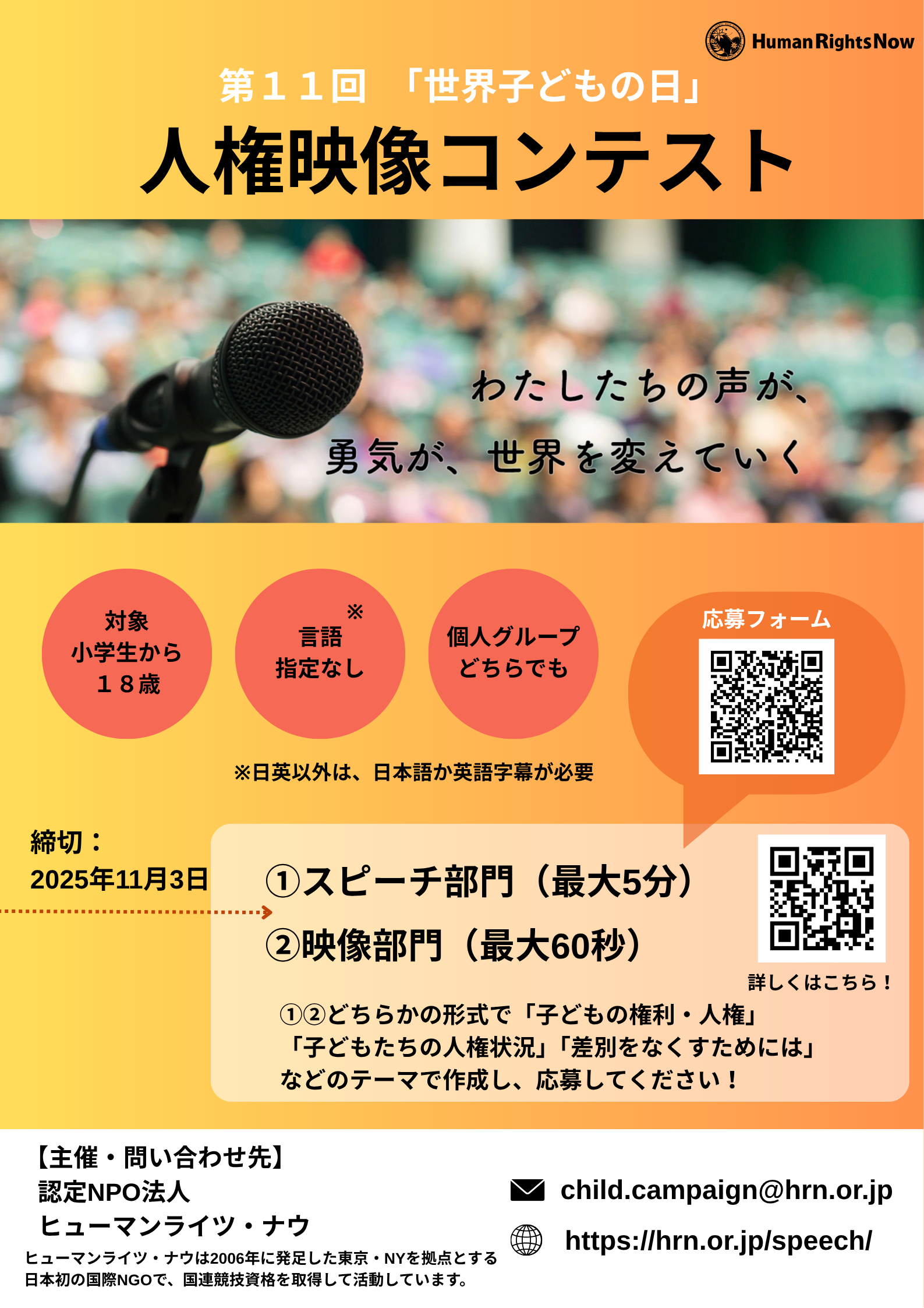 ヒューマンライツ・ナウは、毎年、国際連合(国連)が定めた『世界子どもの日(Universal Children’s Day)』(11月20日)に合わせて開催しています。