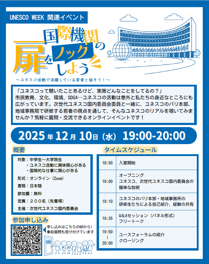 (12/10開催!)「国際機関(ユネスコ)の扉をノックしよう」~ユネスコ活動で活躍している若者と話そう!~