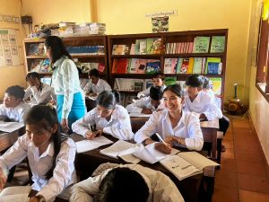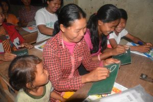 大人の識字クラスで学ぶ女性たち                    中学校クラスの授業の様子