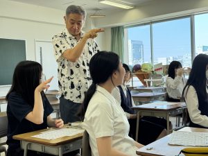 ・今夏も、アメリカ、カナダ、ドイツ、台湾から短期留学生を受け入れており、生徒たちの日常的な異文化理解の場となっている。