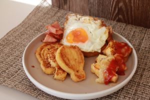 町内企業の協力の下、地元食材を活用した創作料理レシピの開発に引き続き取り組み、コンペティション形式で最上位になった班のものを期間限定で販売することができた。