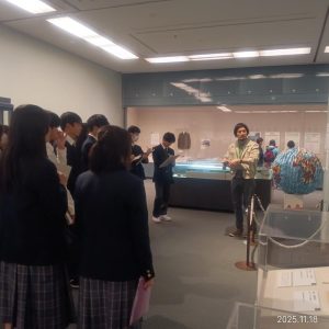 教科学習として、英語では、個々に興味のある社会問題とSDGsを関連させ、原因・影響・解決策を300語以上のエッセイにまとめさせた。美術では昨年度ユネスコ員会の作った地球儀の千羽鶴の展示している松戸市博物館に見学に行き、戦後80年の企画展と、松戸地区の3万年の歴史について学んだ。千羽鶴の展示については昨年度からの活動を次の学年の生徒に引きつぎぐ機会を得た。