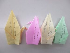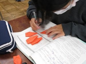 平和の折り鶴プロジェクト、Sadako Peace Cranes Projectに学校全体で参加した。今年度については、地域の方々からも折り鶴の寄付を多数いただくなどより広範囲で実施することができた。