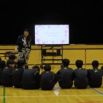 ①ふるさと学習・人権学習の一環として、公益財団法人アイヌ民族文化財団の講師を招き、アイヌ文化講演会を実施した。アイヌの文化や考え方に触れるとともに、ムックリ等の楽器の演奏を鑑賞し、差別のない社会の在り方について考える機会とした。②3年生は修学旅行で世界遺産・平泉を訪れ、文化遺産を尊重する意義について再確認した。