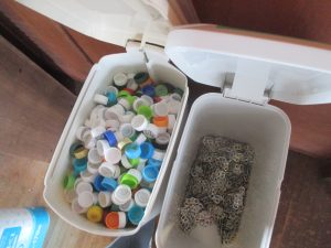 ・リサイクルの一環として美化・環境委員会を中心にキャップ・プルタブ集めを行っている。