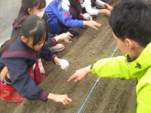 藍住町の特産である春ニンジンの栽培を農家の方に教えていただきながら行う。