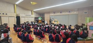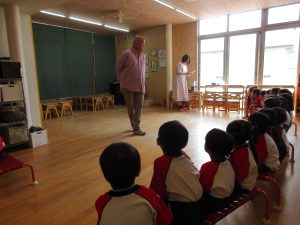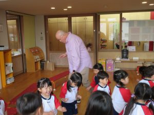 週に一回外国人講師と英語でのやり取りを通して遊んだり、歌ったりしながらコミュニケーションを図り異文化に触れるようにした。世界には様々な国・人種があり外見や生活習慣の違いなども人権教育と共に知る機会となった。
