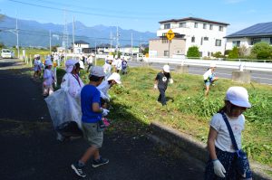 この拾ヶ堰の環境を守るために実施している「拾ヶ堰クリーン大作戦」は、今年度で26回目を迎えました。児童会活動として環境ビオトープ委員会が中心となり、計画から運営までを行っています。学年ごとに清掃場所を分担し、ごみ拾いを中心とした清掃活動に取り組んでいます。活動開始当初は粗大ごみも多く見られましたが、長年の継続により、ごみの量は年々減少しています。地域の方々と共に行うこの活動は、地域に根付いた伝統行事として定着し、マスメディアに取り上げられることも多く、環境保全への意識を高める取組みとして今も続いています。