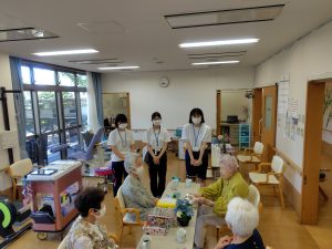 学校全体の取り組みとしては、6月に全校で奉仕活動を実施、中学生はクラスごとに近隣の介護施設や障がい