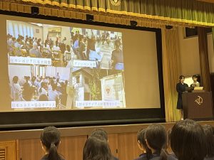 ・カンボジア(日本ユネスコ協会主催)やフィリピン(姉妹校小林聖心主催)へのスタディツアー参加者による現地へのサッカー用品や文具・衣料品支援など。カンボジアへのサッカー用品支援では保護者や地域への呼びかけも行い、スタディツアーに参加した他校とクラウドファンディングも立ち上げ、校外との連携も進めていた。