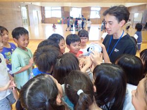 国際理解の分野では、今年度6、8年生と5年生にネパールと中国国籍の生徒が転校してきたため、それぞれの国の挨拶や文化について理解を深めた。また9月17日(水)にベイカースフィールドから市長を始め9名の方々が来校し、10項目(お手玉、竹馬、折り紙、羽根つきやけん玉など)に分かれた日本文化を9年生が紹介した。生徒は、事前に担当した項目をどのように英語で紹介するかを考え、当日は実際にコミュニケーションを取ったり、給食も一緒に食べたりすることができた。生徒にとっては、自分の英語力を試すとても大切な機会にもなった。海外の学校との交流でいえば、6年生は今年度も台湾の文雅小学校と手紙のやり取りをしている。また2年生は、オーストラリアのメルボルンの学校とぬいぐるみを交換して、互いの学校生活について情報を交換している。