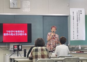 ・職員研修「SDGs」講演会:本校の教職員のSDGsに関する専門性を高め、保護者とともにESD教育や本校のユネスコスクール活動に対する理解を深める目的で、SDGsに関する幅広い活動を推進されているアンカンミンカンの富所哲平氏を今年度も講師に、「SDGsの先へ!~ひとりの百歩ではなくみんなの一歩~」の演題で御講演をいただきました。