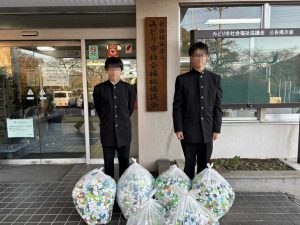 ・ペットボトルの回収活動:高等部生徒会が校内に設置したペットボトル回収箱に入れられたキャップを定期的に回収をし、12月にみどり市社会福祉協議会に生徒会役員が手渡しをしました。