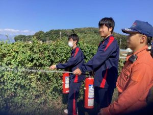 ・国際防災デーに関連して、10/30に全校で火災避難訓練を行い、その後消防署署員からの講話、小・中学部生は消防車見学、高等部は消火器の使用方法を実演体験しました。