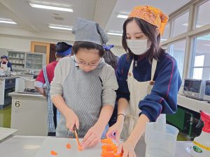地元の小学校4年生を対象とした、今年度で13年目を迎える食育活動です。今年度は、日本人の主食であり、岩見沢市の基幹作物である「米」に着目し、講義や体験を行いました。日本の米は、海外からのインバウンド、国外出荷が増えている一方、国民の消費量は停滞している現状から、幼少期から米の大切さを勉強し、米を使用した加工・調理で使用することにより、少しでも日本文化の継承や消費拡大の一助にしたいと考えて活動をしています。原料生産部門、加工調理部門、学習部門の3つのプログラムに分かれ、作物の栽培・加工・消費の体験、講義を通して、農業・食に関する知識や技術を身につけられる全9回のカリキュラムです。