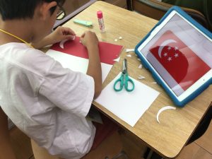 In foreign language classes, students learned about Singapore and created welcome flags and posters.