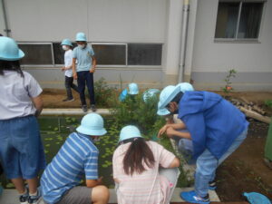 本校の緑豊かな環境を生かし、ESDおよびSDGsの視点を踏まえた自然体験活動を軸にした環境教育を地域の人材ボランティアを活用し、協働・対話による「課題発見・解決学習」をすすめる。また、ユネスコの無形文化財に登録されている和食について「和食文化をテーマにした授業」を継続して行う。 また、海外の小学校とのオンラインでの国際交流を継続して実施する。さらに、減災・防炎教育を重点とし持続可能な社会の担い手を育成する。