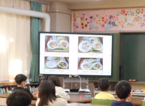○日本と板橋の行事食や伝統野菜を知り、食文化を大切しようとする意欲をもたせる授業を行った。実際に普段食べている学校給食の献立を活用し、日本の季節や祝い事にあわせた食事を紹介した。