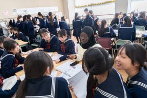 9名の有志生徒が、「女性首長によるびじょんネットワーク」に参加した。参加生徒は、日本では意思決定の場面に女性の存在が少ないことを知り、女性の政治参画が必要であることを学んだ。