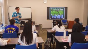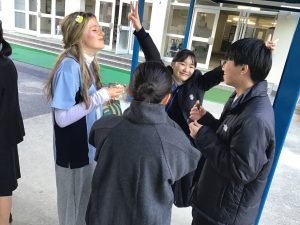 12月15日にOcean Reef高校から24人が初めて本校を訪れて生徒たちと交流を行った。歓迎会にて生徒が司会をつとめパワーポイントを使って両校のモットーや学びについて紹介を行った。本校合唱部が校歌と「上を向いて歩こう」を披露し、Ocean Reef高校がダンスを本校生に教えてくれ一緒に踊った。その後日本文化をルーツに持つ部活動を中心に文化体験を行い、その他の部活動の見学・体験も案内した。焼き芋、ぜんざい、おにぎり、日本の伝統的なおもちゃを通じて交流を深めた。別れの際には生徒たちによる自作のステッカーや箸置き、バッヂなどを贈った。多くの生徒が事前準備からこの活動に積極的に参加し、自発的にコミュニケーションを図り、両国の親善を深める機会となった。