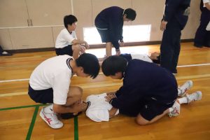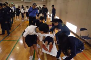 町会・自治会と生徒が協働し災害に立ち向かう訓練として、今年度は救命訓練などを実施した。