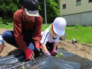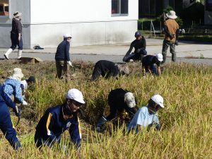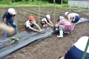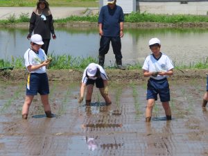豪雪地帯である只見町の気候・風土の中で育まれてきた農産物と、それらを大切に食文化としてつないできた人々。栽培活動を通して、ふるさとの自然と自分たちの生活との関わりについて体験的かつ系統的に学んでいる。1・2年生は生活科の授業を中心に、学校農園にて「さつまいも」などの簡単な作物を育て収穫。3・4年生は総合的な学習の時間において、地域に伝わる「健次なす」を栽培。収穫したなすは町の給食センターにて調理され、給食の献立の一部として町内の学校へ。地産地消について考えるきっかけとなっている。5・6年生は田植えや稲刈りを実際に体験しながら、米づくりから地域の産業について考えを広げることができた。また、すべての学年において地域人材を講師として活用するとともに、「だんごさし」といった伝統食や年中行事についても体験できるようにしている。豊かな自然だけでなく、地域の「人」との関わりを通して、只見愛を育むべく自然の恵みや食文化、年中行事、それらのつながりについて学ぶことができている。