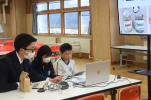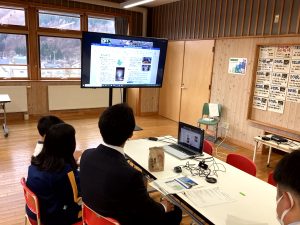 また、ESDで学んだことを成果発表会として町内の他の小・中学校へ発表・発信している。町内の児童との交流活動・共通実践により、互いの学びの理解、町としての学びの深まりにつながった。学習発表会や伝統芸能発表会、研究授業等において、自分達の学びを発信したり、他校の実践発表を聞いたりすることを通して、さらに自分達の実践について振り返り、実践の成果と課題について把握するだけでなく、学びを改善したり自覚したりすることにつなげることができた。特に今年度は、給食食材交流のある柏市の第八小学校とオンラインで交流を行った。本校5年生は、「只見の自然と食文化」について、只見の豊かで恵まれた自然環境から生み出される只見のお米に代表される特産物を画面共有を用いて紹介した。また、柏市立第八小学校からも、地域の特色や環境をテーマにした学習成果の発表があり、互いの地域を比較しながら理解を深める機会となった。オンラインでの交流を通して、異なる地域の環境や食文化、価値観に触れ、持続可能な社会づくりに向けた視点を広げる貴重な学びとなった。