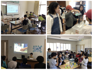 生きていく上で必要不可欠な「水」、生活に欠かせない「水」。身近だが案外知らない水について学びました。はじめには、浄水場へ行き、自分たちが普段の生活で使っている水がきれいなのはなぜなのか見学に行きました。また、砂糖と塩が水に溶ける量や、表面張力など水の性質について実験や、水がどこからきてどのように巡っているのか、人の体の中での水の巡り方などについてみんなで学びました。その後の個人テーマでは、霧や凍り方、水の種類、死海についてや水道の歴史、肌がきれいになる水・飲み方など個人のテーマを決め調べたり実験をしたりしながら考えを深めたものを発表していました。