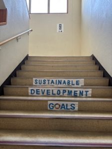 の使用を促進。生徒会が校内にSDGs掲示を行い、2030年に向け、生徒の関心を喚起しました。