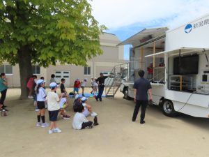 当校では、4学年の総合的な学習の時間と、社会科「自然災害に備えるまちづくり」の学習で、災害から身を守るためにはどうしたらよいかを考え、いざというときに自分から行動できるように防災への意識を高めることを目的に、「防災合宿」を中核とした防災学習を行っている。