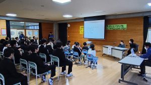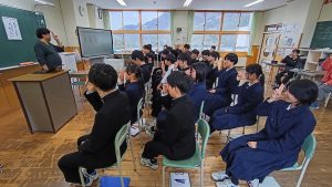 「国際防災の日」を記念して、地域の防災・減災について考えるため、能登半島豪雨を受け、小中合同の「防災教室」を開いた。前半は、防災士の方からお話を聞き、被災地の様子や身近な災害について学んだ。後半は、グループに分かれて話合いを行い、自分たちにできることを考え、地域への防災意識を高めた。また、「人権デー」を記念して、人権週間を設けた。「NPО法人文福」や「富山県聴覚障害者センター」から講師を招き、差別やいじめ、聴覚障害について理解を深めた。さらに、生徒会主催で全校集会「みんなの心に光を灯す集い」を行い、一人一人が人権問題と向き合うよい機会となった。