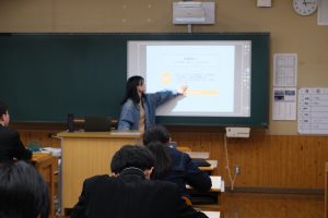地域で活躍されている人材を学校に招き、全学年対象に行った。地域の課題とその課題を解決するための仕事について話を聞き、考えたことをグループごとに意見交流した。