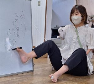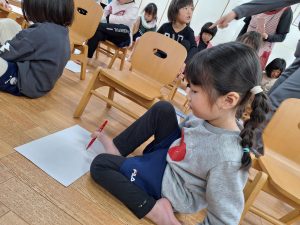 生まれつき両手がなく、足を手のように使って生活をしている女性に”手がない暮らし”とはどういうことなのか話を聞きました。足を使って、字や絵を描いたり、ハサミで紙を切ったりする様子を見せていただくと、手がないというハンディキャップをカバーする足の動きに子どもたちは歓声をあげ、感動・感心していました。これまでに経験してきたことから、すぐに出来ないと決めつけて諦めず、何でもやってみることの大切さを教わりました。