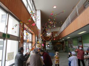 ②においては,地域のボランティアの方を講師としてお招きし,お囃子の継承活動を行ってきた。学習発表会では,講師の方々と一緒にお囃子を披露することができた。また,会津地区に伝わる五穀豊穣,家内安全を願う伝統行事「団子さし」を行った。各家庭で行うことが少なくなっており,自然の恵みに感謝する伝統行事を体験することができる。