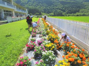環境緑化活動は,4月から11月までを主な活動期間とし,花壇づくり・苗植え・水やりや花がら摘みなどを行っていく。また,5・6年生では,森林環境学習を行う予定である。