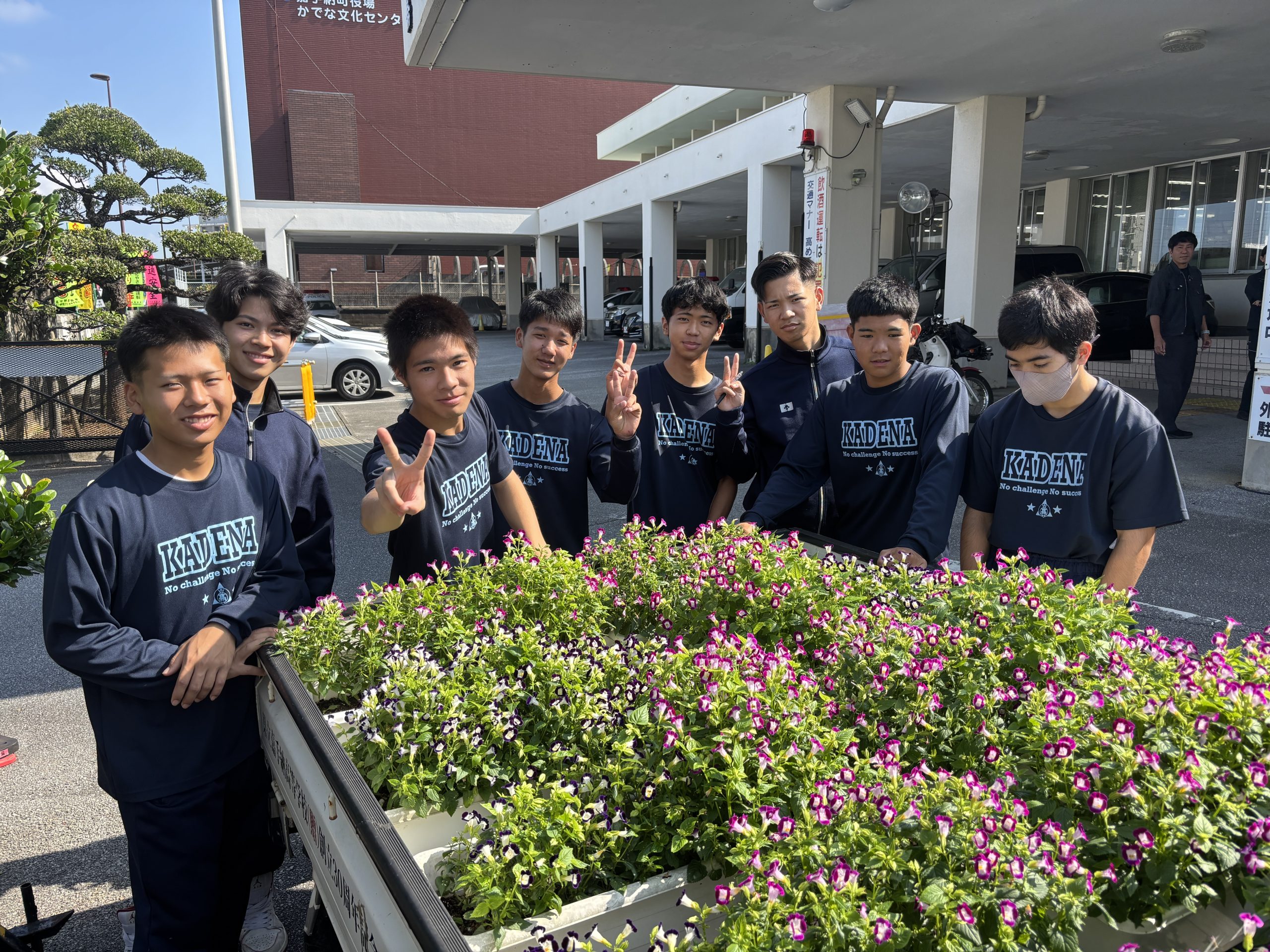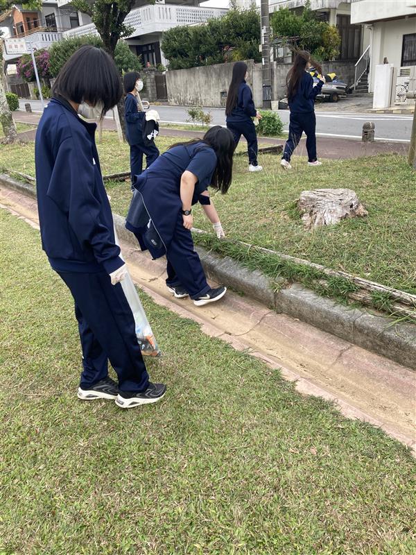 ⑥本校は地域連携を積極的に行っている。町の美化活動(嘉手納町彩りプロジェクト)への参加、地域の運動会やお祭りでのボランティア、小学生向けの夏休み自由研究教室(生徒が講師になり、小学生へ講座を開設)、小学校への出前講座など多岐に渡る。これが生徒のキャリア教育に繋がればと考えている。年々、参加希望の生徒が増えてきており、「チャレンジ」が学校での合い言葉として浸透してきている。
