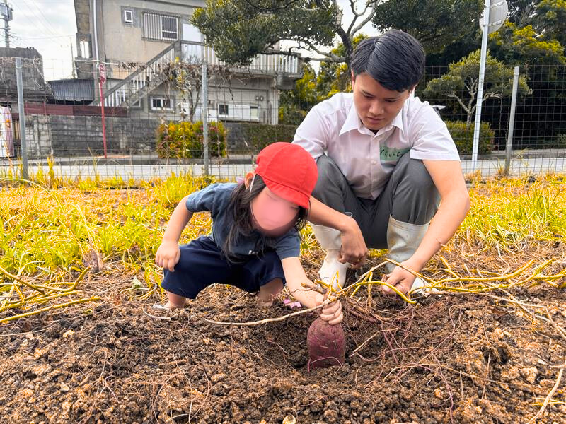 ②ビジネス工業系列では小学校の要望を聞きながら、ニーズにあった掲示板を作成し、地域の小学校へプレゼントをし、農業では芋を栽培し、保育園生へ芋掘り体験を実施した。