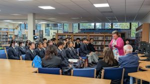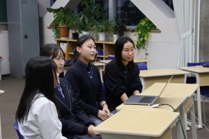 また、イギリスの姉妹校であるキングエドワード6世校とはオンライン交流を継続して実施し、ICTを活用した国際交流を通して、地理的制約を越えた対話の場を構築した。生徒は文化紹介や意見交換を行い、相手を意識した表現や情報発信の在り方について学ぶとともに、英語によるコミュニケーション能力の向上を図った。