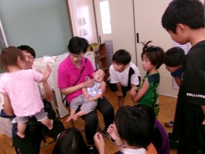 命の誕生について知り、赤ちゃんとの触れ合い疑似体験を行い、命の大切さを学ぶ。