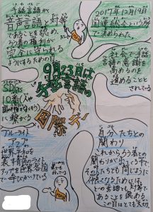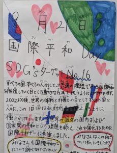 今年度は、本校の特色のある委員会「ユネスコ委員会」で、点字に触れようという活動を行った。SDGs「4.質の高い教育をみんなに」を見据えた活動である。多目的室に多くの児童を集め、点字に触れたり、作ったりする活動を行った。また、昨年度の定期レビューで指摘いただいた、国際デーの活動が不十分であるということから、国際デーって知っていますか?という目的で校内に国際デーについての掲示を行った。