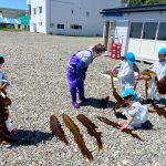 その後、海へ行った際に拾った昆布を持ち帰り、幼児同士で話し合いをし干したり、丸めたり、切ったりし、