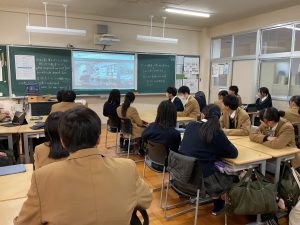 ネパール ドゥルガダッタ中学校とのオンライン交流おいて環境学習についてのプレゼンテーションを行っている様子