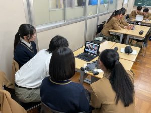 韓国 忠北外国語高校生徒とオンラインで交流する本校生徒たち