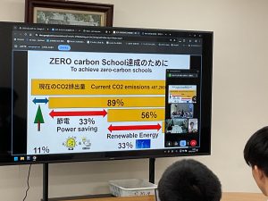 ネパール ドゥルガダッタ中学校とのオンライン交流にいて環境学習についてのプレゼンテーションを行っている様子