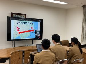 特に今年度は、これらの環境学習を基盤として、長年交流を続けてきた台湾・大同高級中学の生徒および教職員が5月に来校し、1泊2日で授業体験や本校生徒との交流会を行いました。そして12月にはネパールのドゥルガダッタ中学校とオンライン会議を行い、これまで行ってきた環境学習について発表しました。このように環境問題を共通のテーマとし、生徒たちは地球規模の課題を自分事として捉える貴重な学びの機会を得ることができました。