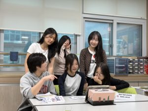 韓国 忠北外国語高校の生徒とグループセッションを行う本校生徒たち