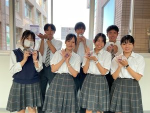 生徒会役員が手作りした「梅干し」を手に記念撮影