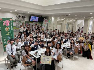 B1グルメグランプリの「津ぎょうざ」でランチセッションを行う台湾 大同高校生徒と本校生徒たち