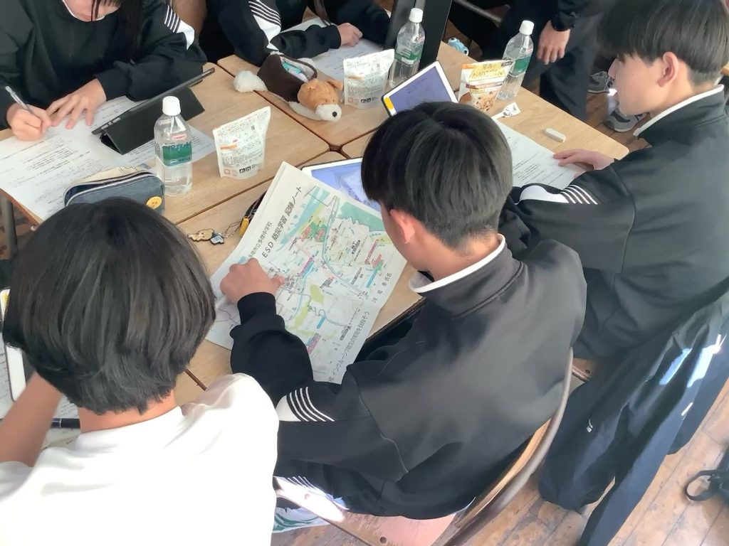 当校は、昨年度に引き続きユネスコスクールとして各教科・領域において持続発展教育・ESDの視点に立ち、持続可能な社会の担い手となる「2050年の大人づくり」を目指した教育を展開しています。特に今年度は、地域学校協働本部との連携をさらに深め、全校生徒に自然との共生を考えるねらいとして、養蜂活動との関わりから「蜜蜂の一生」を学ぶ機会をもちました。また、3年間を見通した減災・防災は教育の充実を図るねらいとして、昨年度から系統立てて行っている地域防災について、地域学校協働本部の炊き出しによる昼食体験や地域の高齢者との交流などを第2学年で防災デイキャンプとして実施しました。
