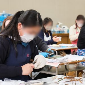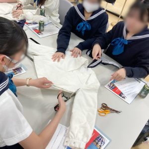 中高生徒会の企画として、本校の制服のウール記事を手掛けている日本毛織会社(ニッケ)、同じく縫製を手掛けているアカツキ商事の社員の方を招いて、繊維や衣料について考える環境教育プログラム「ウールラボ」を実施。中高生徒会では、3学期に不要になった制服の回収を検討しており、制服の作られる工程や回収された制服の扱いについて知る機会になった。生地の素材の特徴やお手入れを実験やクイズで学んだほか、廃棄衣料の問題、発展途上国での縫製労働の労働環境問題、マイクロプラスチックによる海洋汚染問題など、制服を通じてSDGsについて考えるきっかけになった。(SDGs-8・9・10・11・12・17)